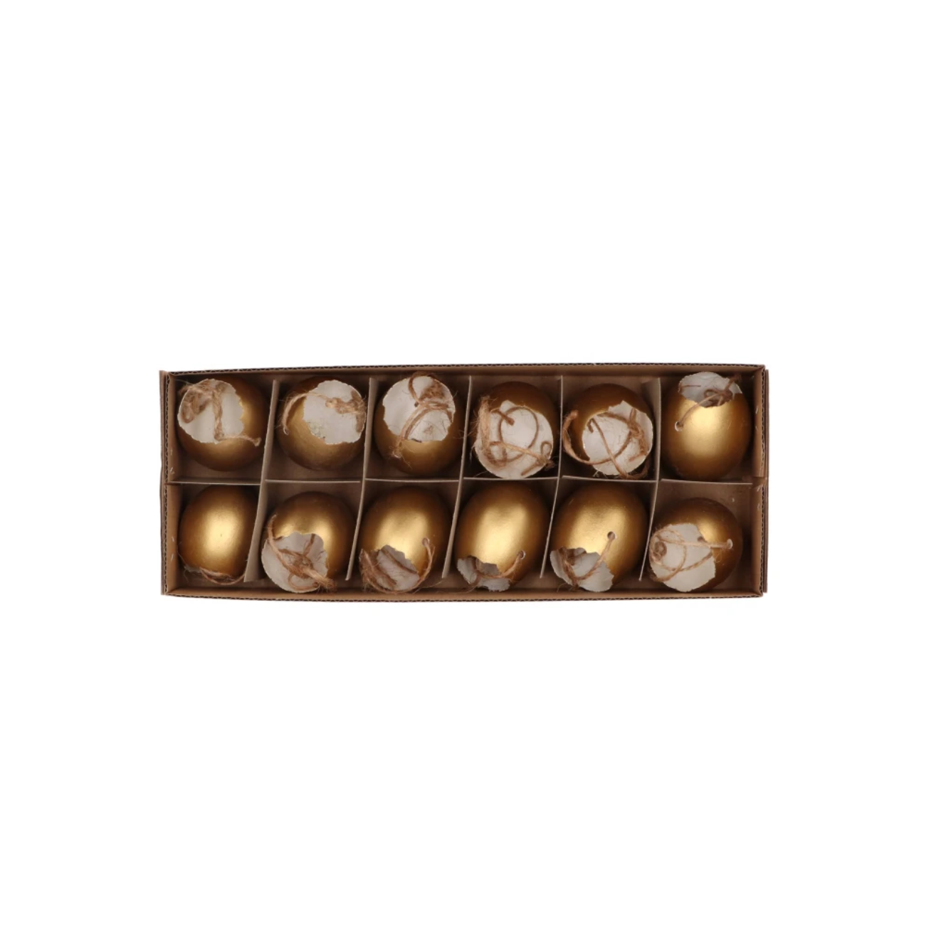 Breng sfeer en elegantie in huis met deze decoratieve open paaseieren met touwtje geheel in goud. Deze stijlvolle eieren zijn perfect als paasdecoratie, maar ook prachtig in de lente.