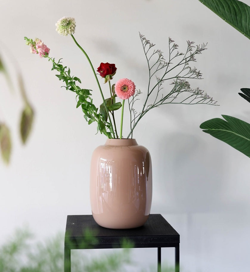 Onze mondgeblazen vazen zijn ambachtelijke producten, typische kenmerken zijn kleine luchtbelletjes, variaties in glasdikte en een levendig uiterlijk. Elke vaas is uniek in vorm en kleur. Maak de vaas schoon met een droog en zacht doekje. Indien nodig, kun je een beetje water toevoegen en voorzichtig poetsen, zonder te hard te wrijven. Droog de vaas daarna goed af. De vazen zijn niet geschikt voor de vaatwasser.